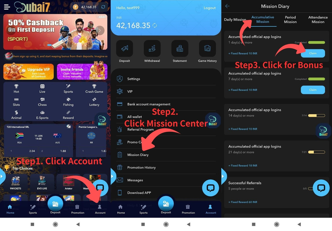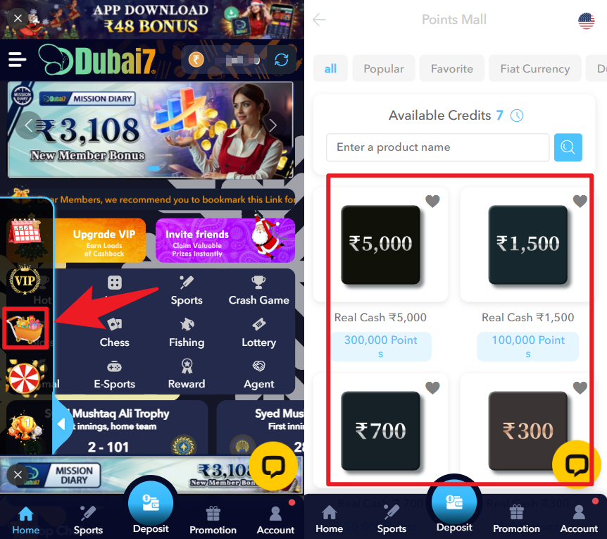 1.【Dubai7 APP Free Bonus ₹100 & Points】can be claimed once you’ve downloaded App and login your account.
