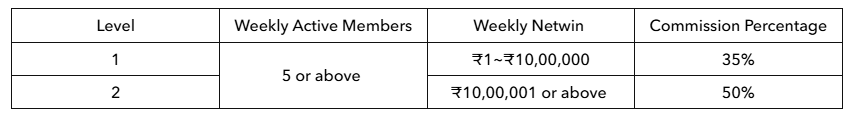 Commission Formula = (User Netwin-(Deposit Amount*10%)-Rebate-Promotion Bonus -Platform Fee( User Netwin*20%))*Commission Percentage=Your commission