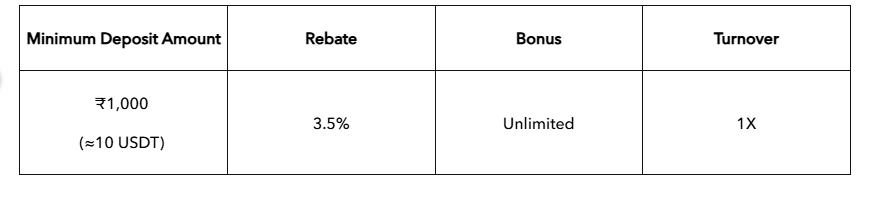 1.【Unlimited Daily Rebate】will be credited on the next day after 12:00 PM (IST).