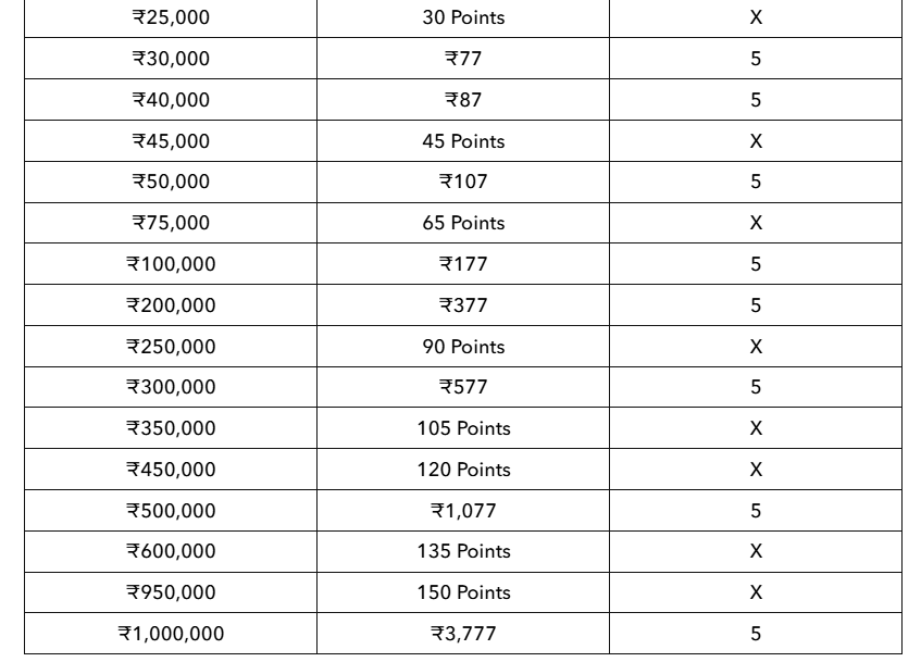 5. Bonus will be credited based on the below chart, maximum bonus will be ₹5,000.