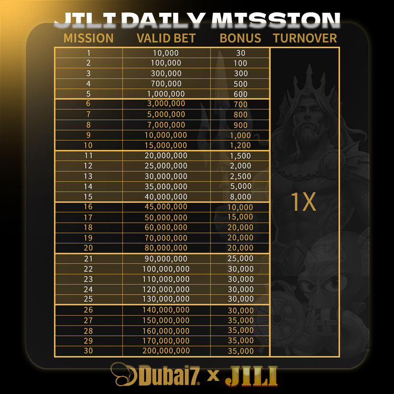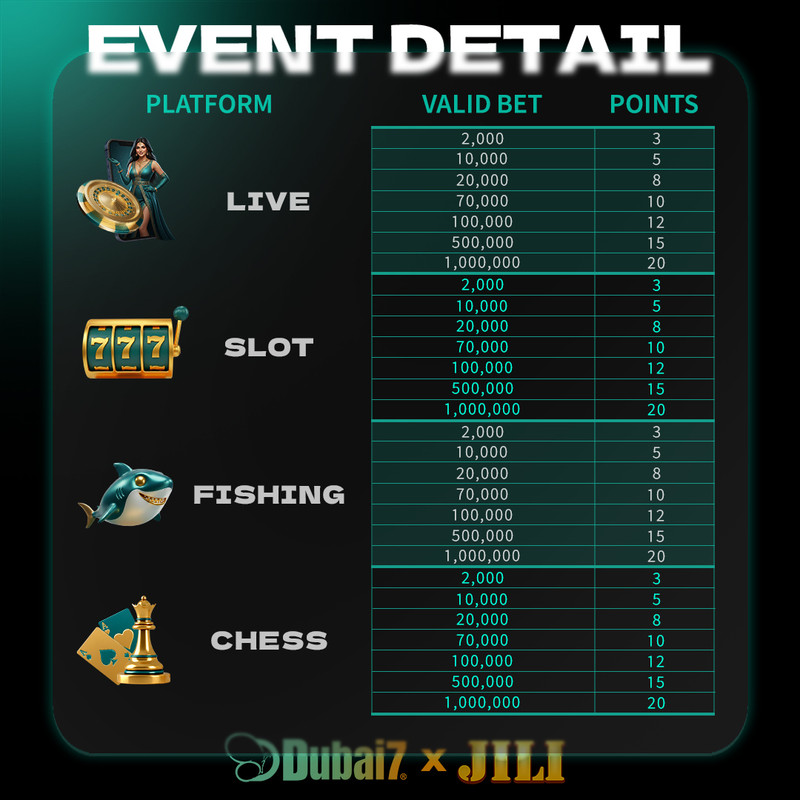 1.【Dubai7 Monthly Bonus】can only be claimed at VIP center on the 1st of every month once you’ve met the bonus requirement as above chart.