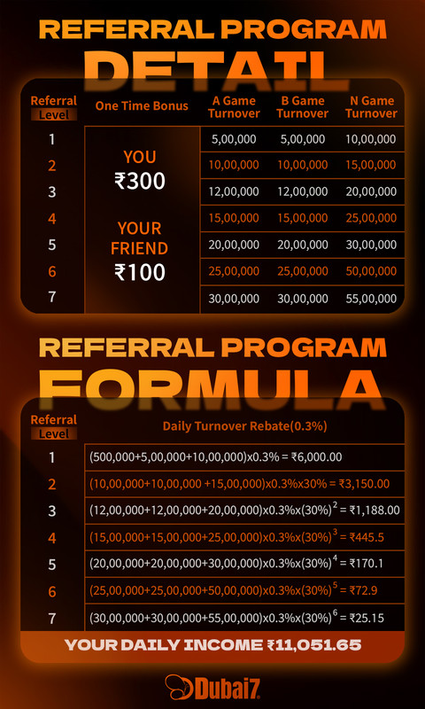 1. The average monthly income of all Dubai7 Referral is between ₹100,000 – ₹500,000.