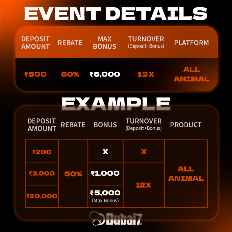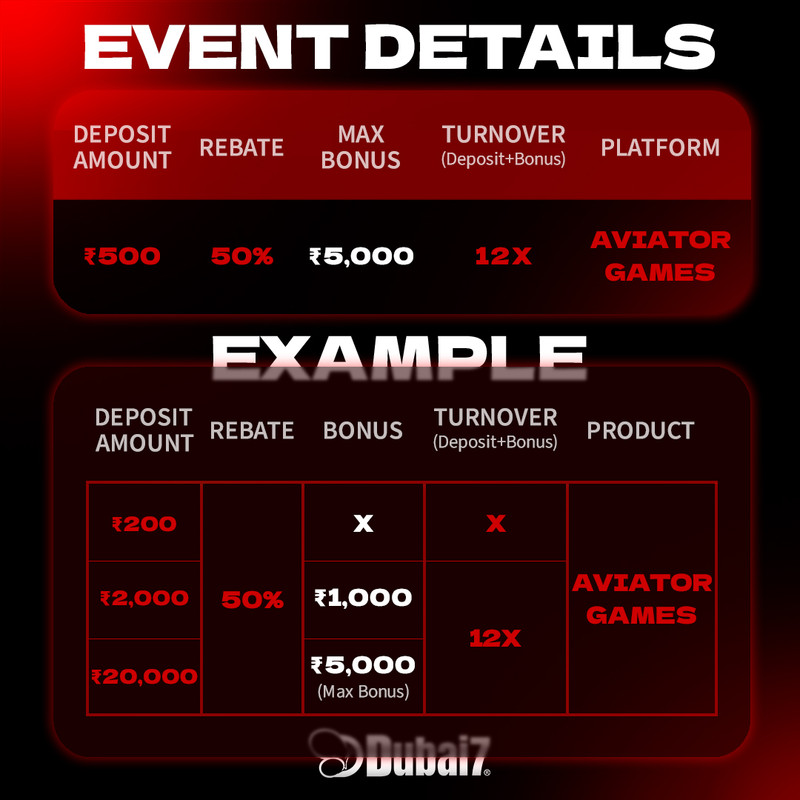 2.【Dubai7 Birthday Bonus ₹12,36,000】 can only be claimed during the current week period.
