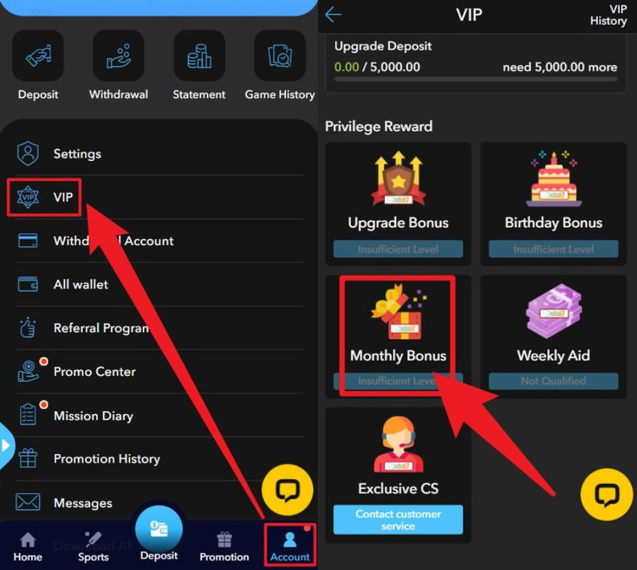 2. Upgrade to “Gold” level or above to claim the corresponding bonus as charted below monthly.