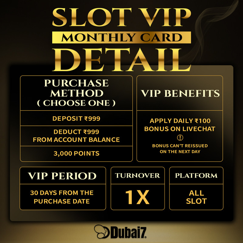 NOTE: If any illegal activity is discovered, Dubai7 will immediately terminate the VIP Monthly Card, and the account will be suspended accordingly.