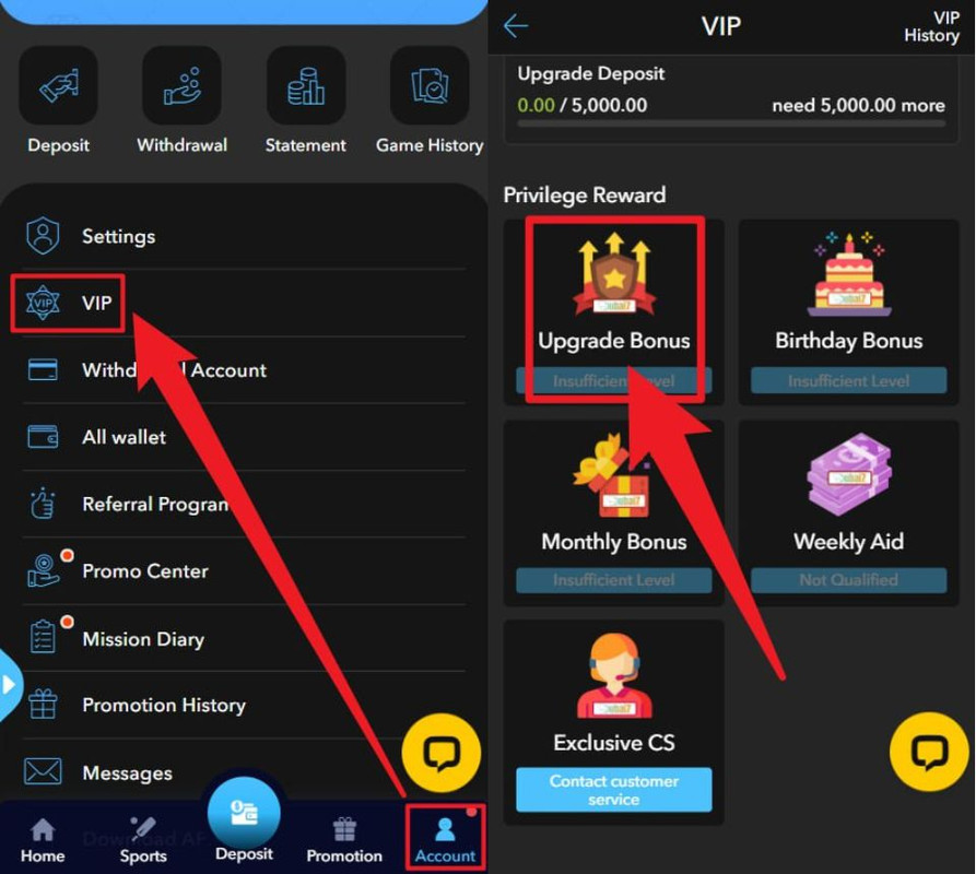 2. Upgrade to “Gold” level or above to claim the corresponding bonus as charted below.